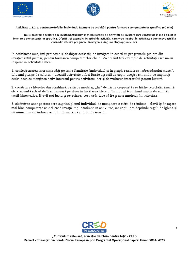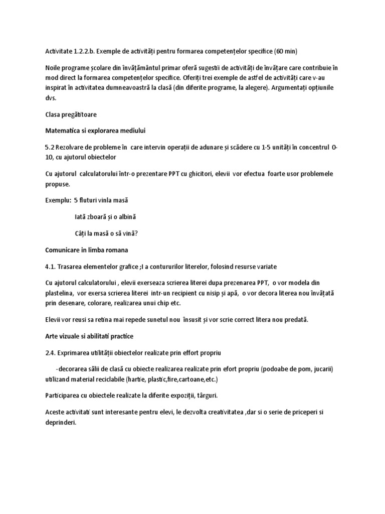 Exemple De Activități Pentru Formarea Competențelor Specifice