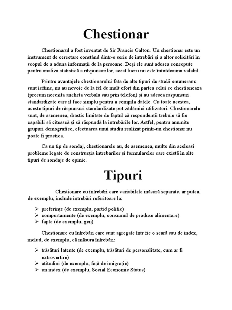 Model Chestionar