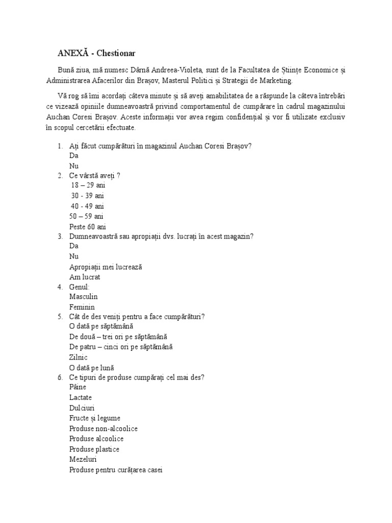 Exemplu De Chestionar Pentru Un Produs