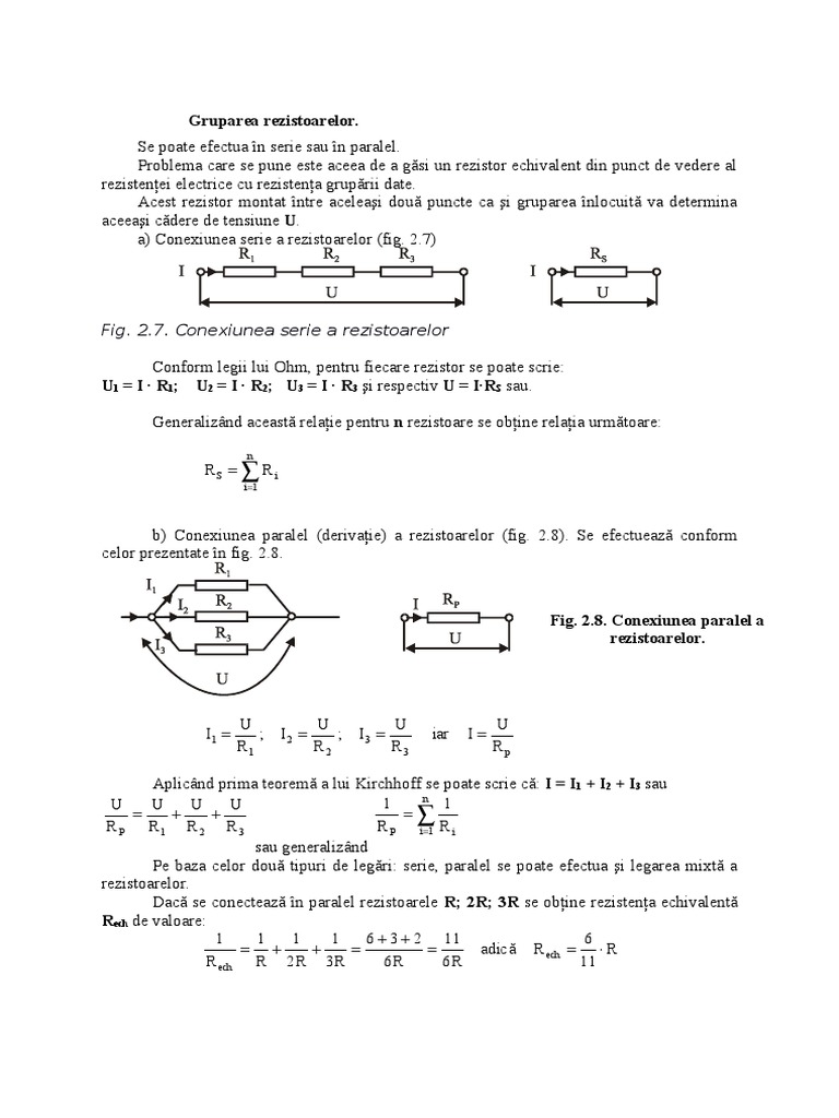 Tensiunea electromotoare este egală cu suma t e m. R r 1 r 2 r 3. Conform legii i a lui kirchhoff i i 1 i 2 i 3. Două sau mai multe rezistoare sunt grupate în paralel dacă sunt conectate între aceleaşi două noduri.