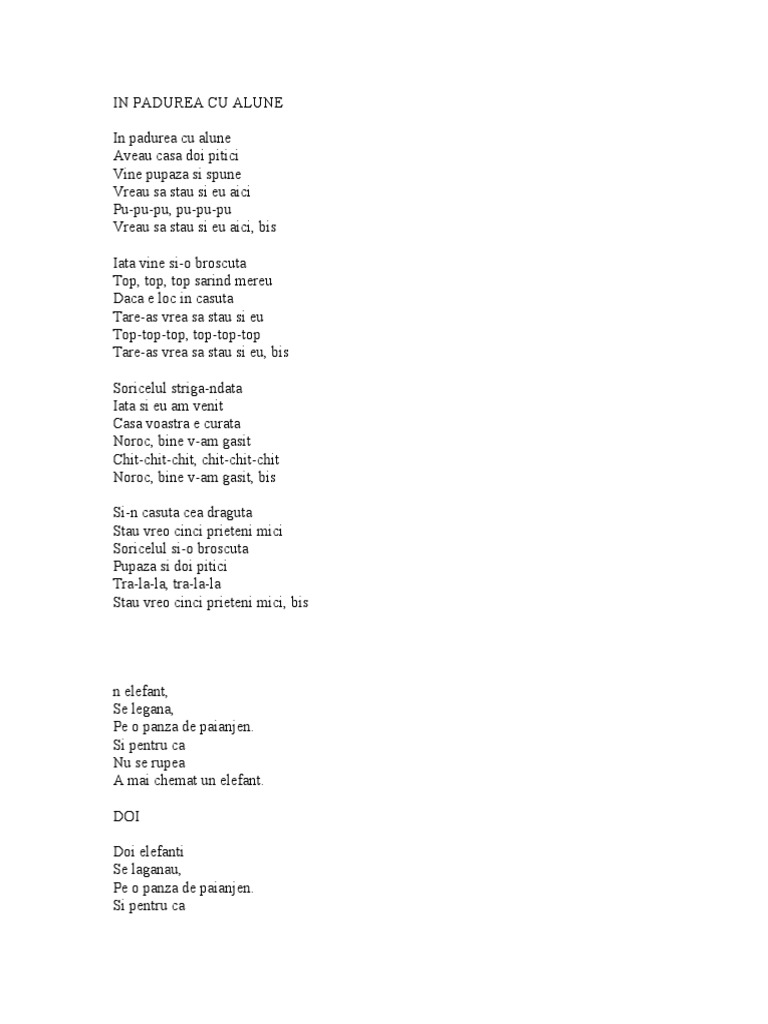 In casuta din padure versuri. Zeci de cantece pentru copii r dati like la tralala pe facebook. N padurea cu alune aveau casa doi pitici vine pupaza si spune vreau sa stau si eu r. Nearby attractions include brancoveanu monastery 0 7 miles and aventura parc dragus 0 1 miles. Cantece pentru copii versuri in padurea cu alune in padurea cu alune aveau casa doi pitici vine pupaza si spune vreau sa stau si eu aici pu pu pu pu pu pu vreau sa stau si eu aici iata vine si o broscuta cantece pentru copii in padurea cu alune lyrics.