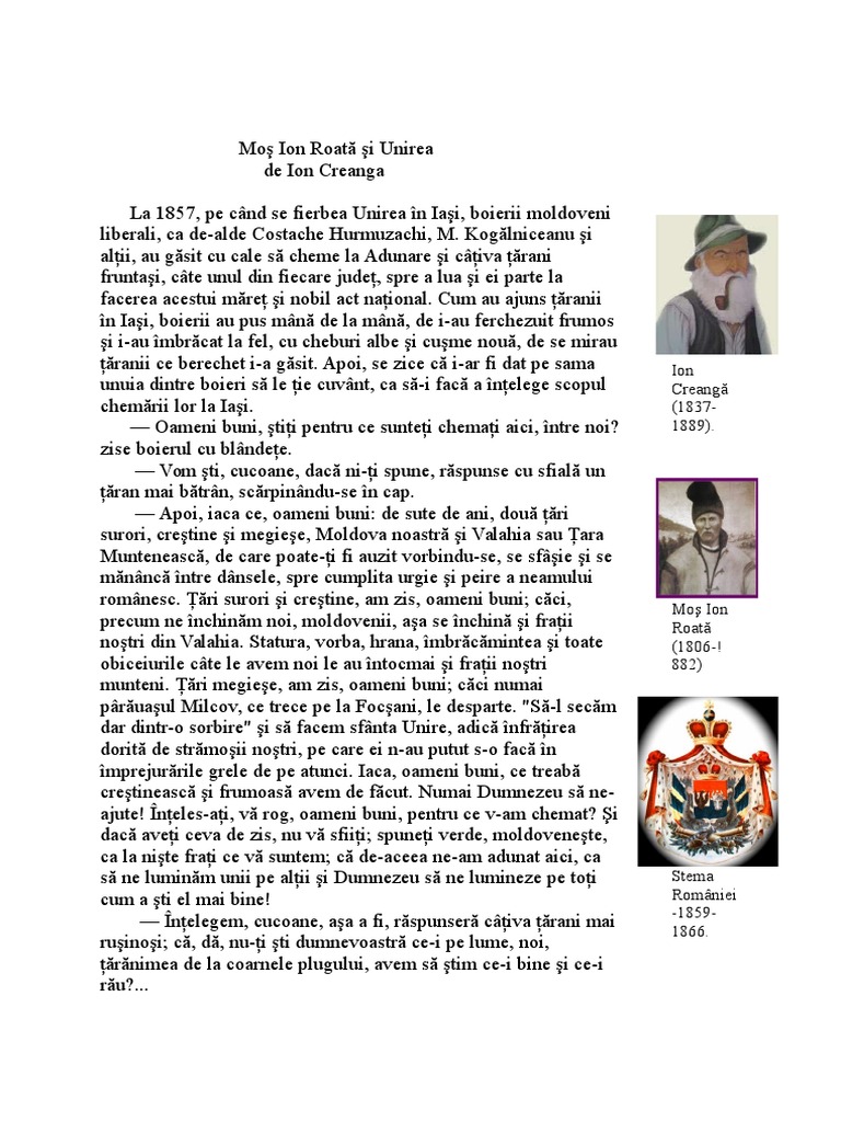Mos ion roata si unirea rezumat. Informații pe care le găsești mai jos despre moș ion roată. Povestea lui moș ion roată din convorbiri literare păstrează memoria colectivă a personajului ce are legătură cu domnitorul alexandru ioan cuza și mica unire din 1859. Alege cel mai bun referat din aceasta cautare si descarca gratuit. Absolutely no copyright infringement intended.