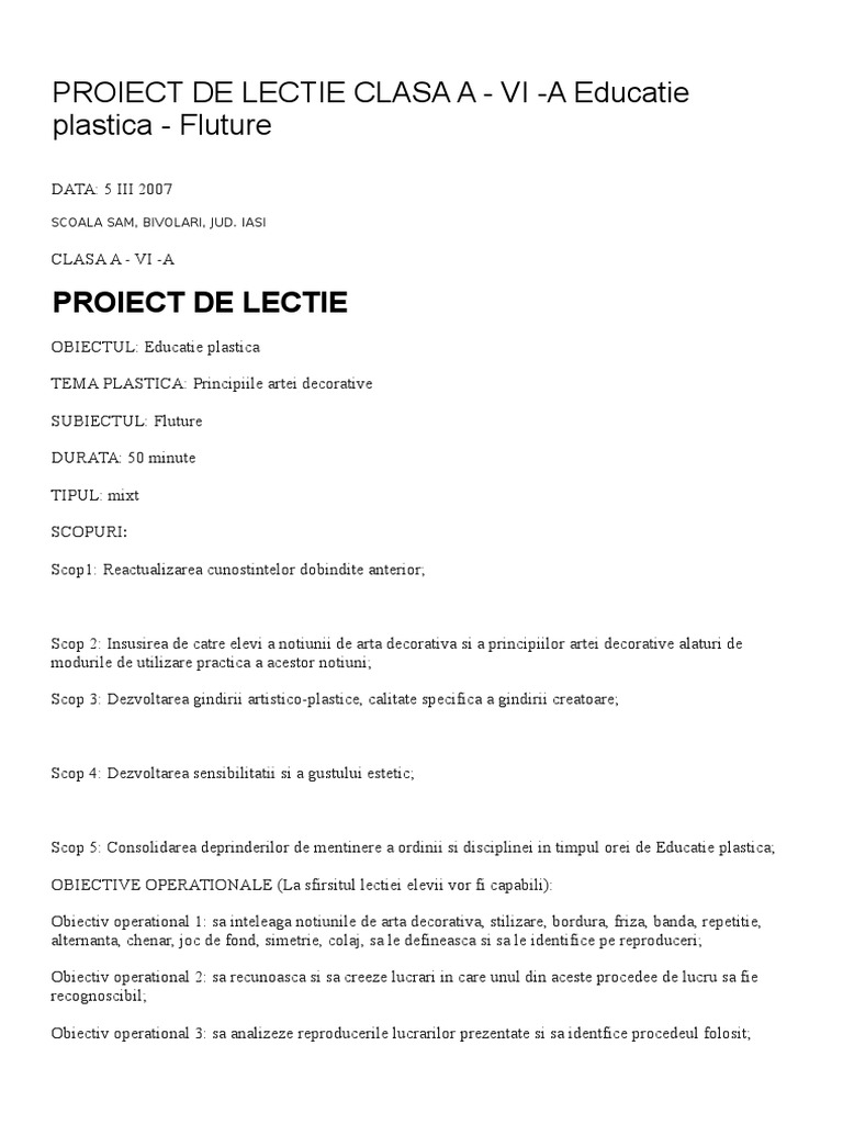 Plan de lectie educatie plastica. Compoziţia echilibrată a spaţiului plastic folosind linia ştergarul. Proiect de lectie clasa a vi a educatie plastica fluture data. 18 februarie 2008 18 38. 0 stele 0 review uri.