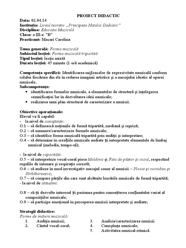 Schita de lectie clasa. Acest proiect trateaza proiect de lectie clasa a v a. 2 august 2013 17 52. Lecţii educatie muzicala proiect didactic.