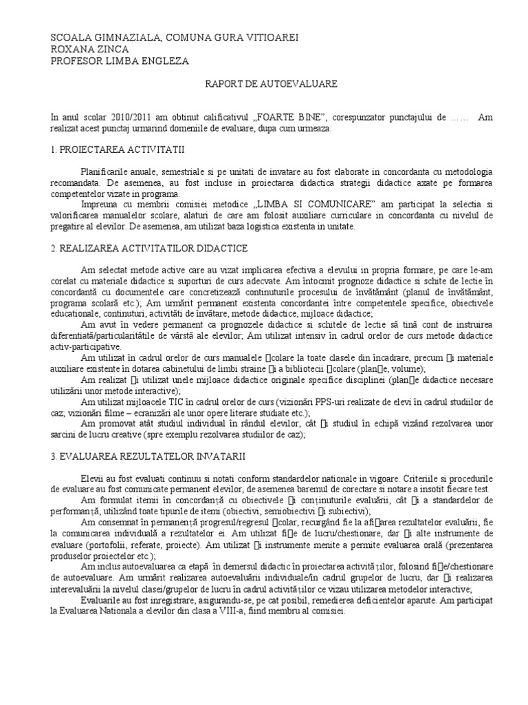Raport De Autoevaluare Pentru Confirmarea Gradului Didactic Ii By Adrian Nemerenco