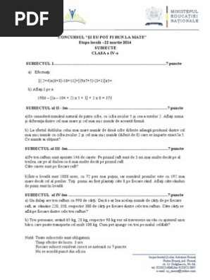 Concursul şi eu pot fi bun la mate etapa locală 22 martie 2014 subiecte clasa a v a subiectul i a se dau numerele. Si eu pot fi bun la mate 2014 25 03 2014 00 44 borodi sorin descarcari. Concursul si eu pot fi bun la mate 2010. 4 au spus mulţumesc.