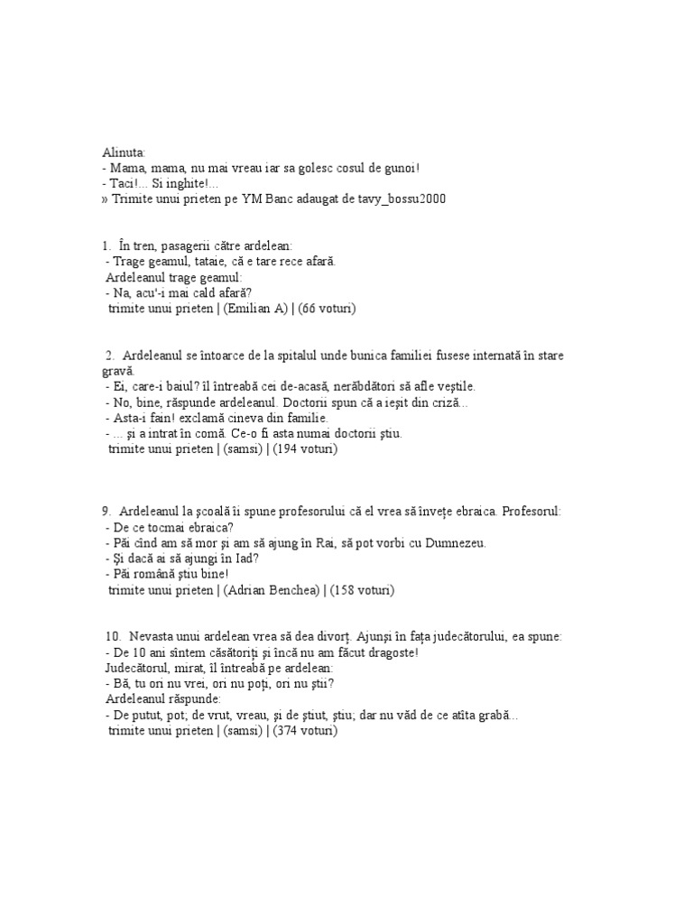Bulă vine acasă de la școală cu un 4 la geografie fiindcă nu a știut unde este africa. Tată meu tată tău tată tu tată său tată su taică. Maică mea maică ta maică sa maică mii maică tii maică sii. Ce a invatat bula de la taica su.