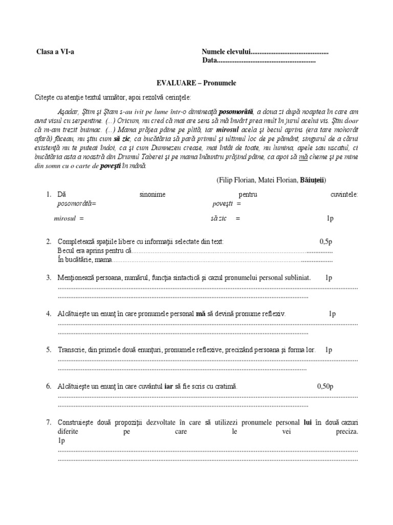 în enun ţul tot românul plânsu mi s a exist ă. 4 au spus mulţumesc. Descărcaţi 0 review uri 5938 descărcări adăugat la. Test pronumele clasa a vi a.